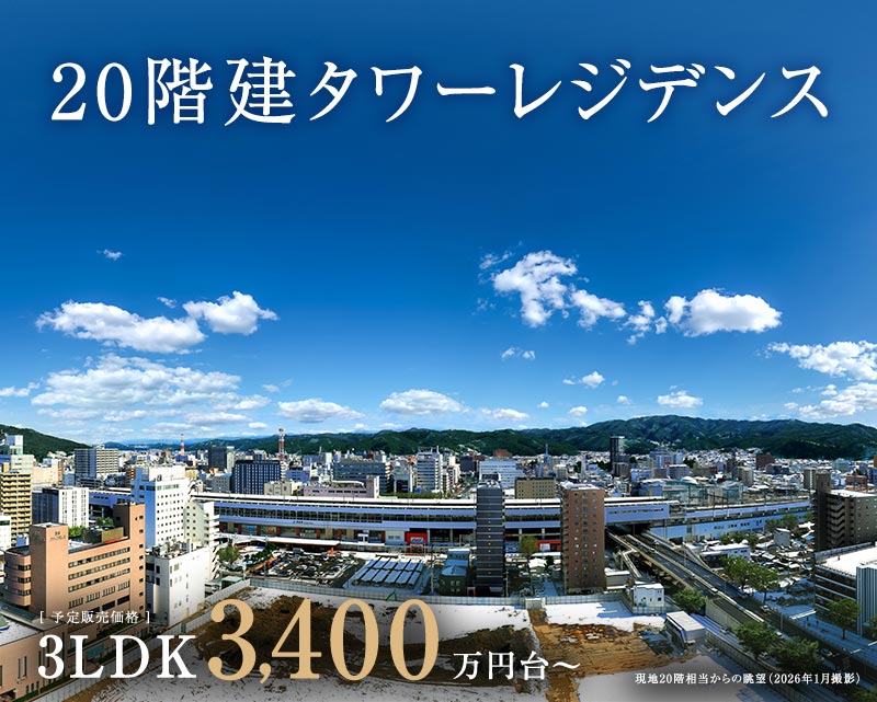 ※1 2003年以降に販売された「福島市」アドレスの新築分譲マンションにおいて、地上20階建の免震タワープロジェクトは初となります。出典/不動産経済研究所調べ(2023年12月時点)※2 車種等には制限があります。※3 2003年以降に販売された「福島市」アドレスの新築分譲マンションにおいて、最大戸数となります。出典/不動産経済研究所調べ(2023年12月点)
