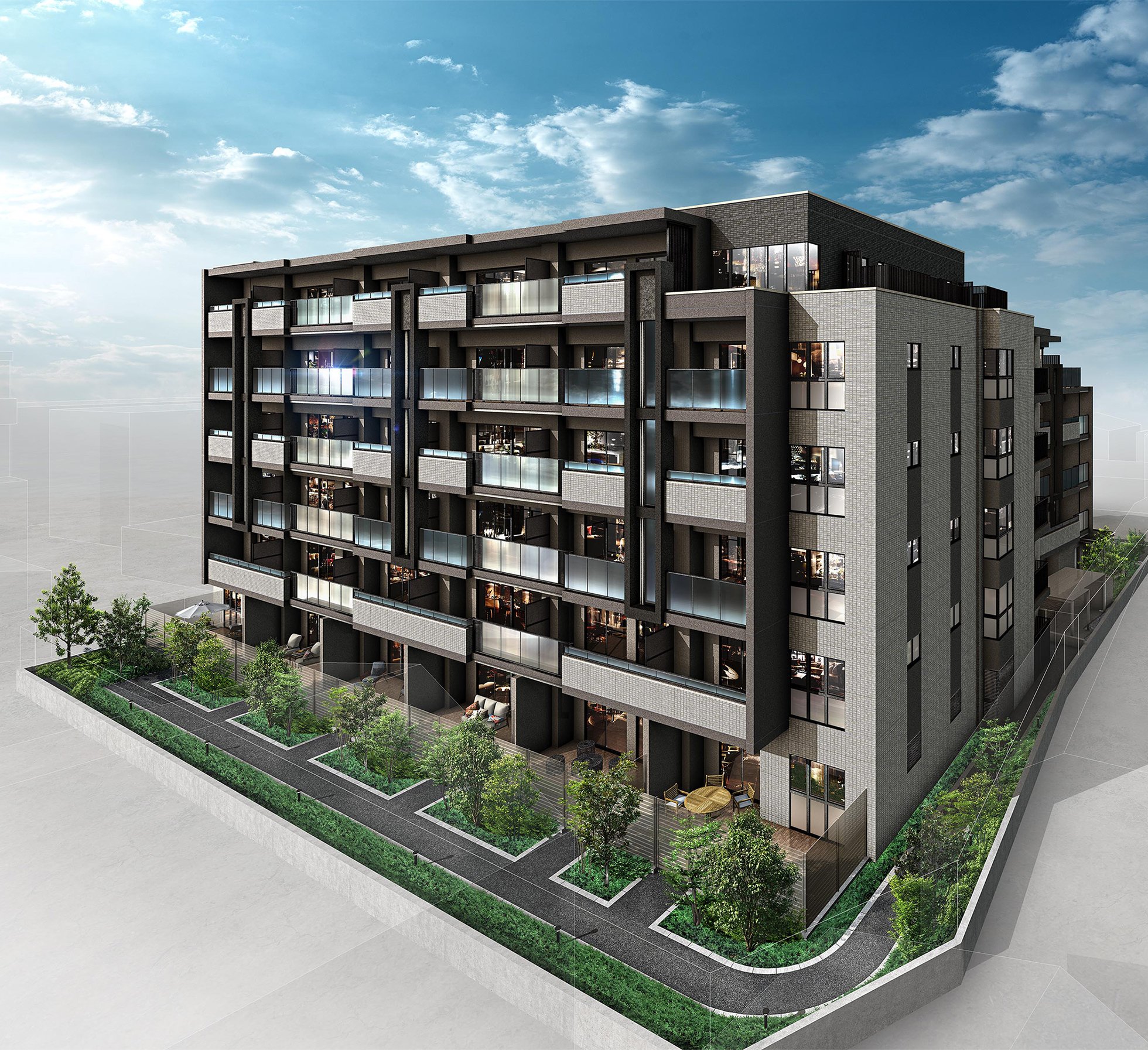 ※掲載の外観完成予想CGは計画段階の図面を基に描き起こしたもので実際とは異なる場合があります。なお、外観の細部及び設備機器等は一部省略又は簡略化しております。植栽は計画段階のもので樹種・設定位置・植高・本数等は変更となる場合があります。竣工時には完成予想CG程度には成長しておりません。