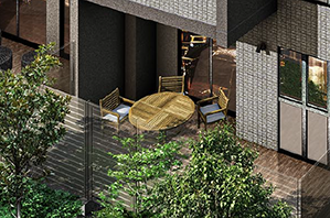 1階住戸では大型犬との暮らしも可能にしました。散歩の際にはエントランスを経由せず、庭から直接出入りできる快適さも備えています。