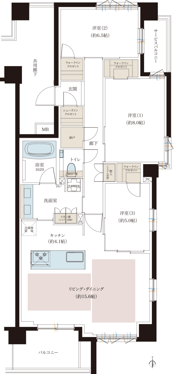 ■ サービスバルコニー面積/4.47㎡(約1.35坪)