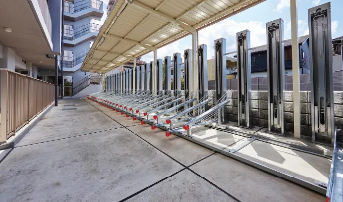 全戸分のルーフ付駐輪場を設置。屋根があるので自転車の保管に安心感があります。
