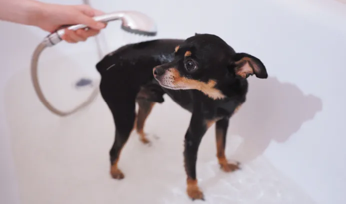 大切な家族の一員のためのエチケットスペース。足裏についた泥を館内に持ち込まないよう、シャワーで洗い流すことができます。