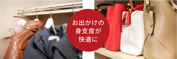 収納しやすく、取り出しやすい機能的なクロゼットは、衣類や収納する物によって対応できる、棚とハンガーパイプがセットされていますので、すっきり片付きます。