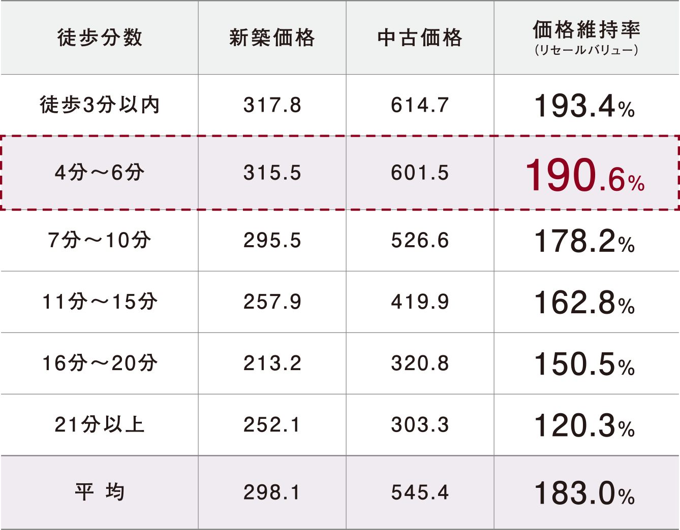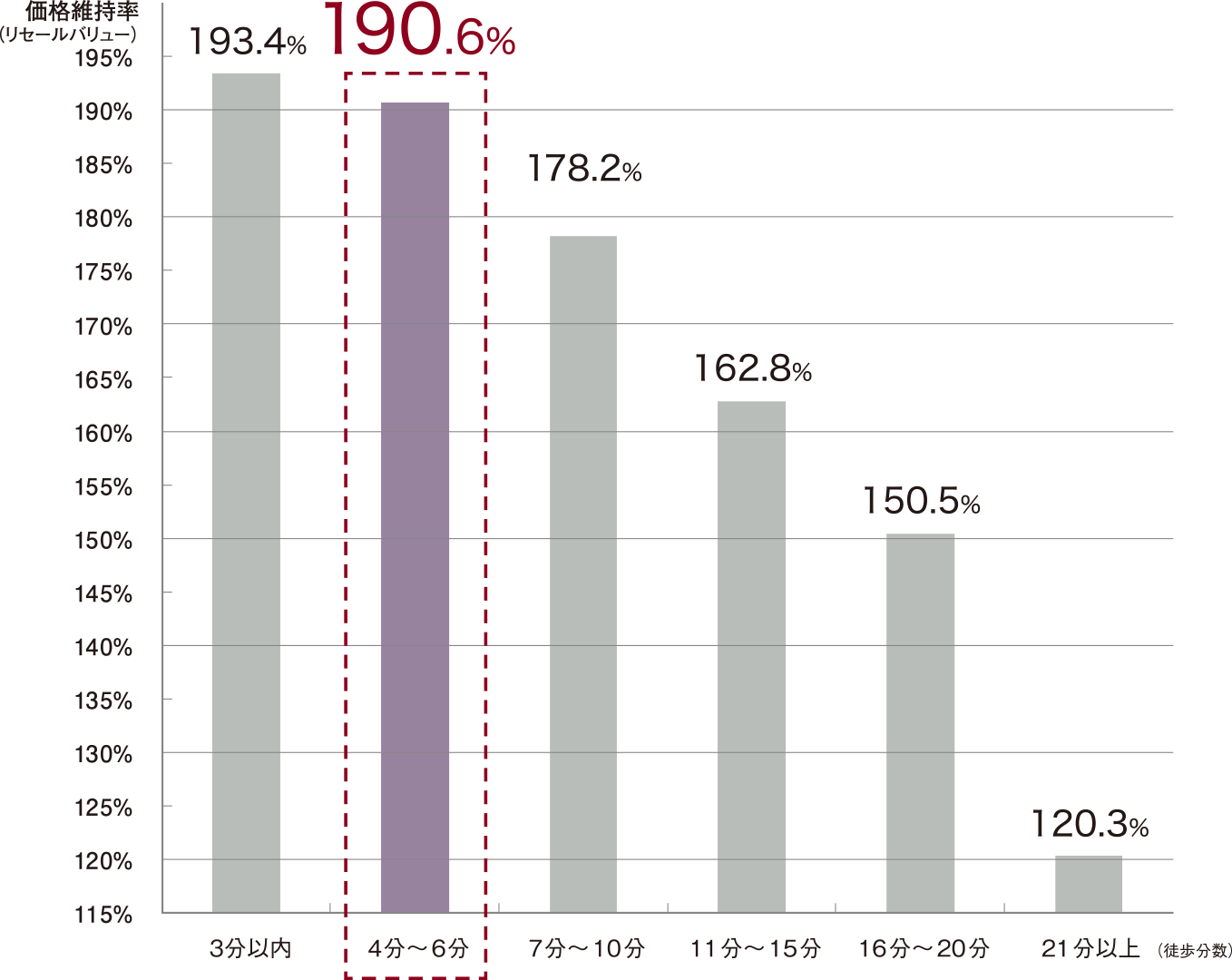 最寄駅からの所要時間別リセールバリュー
