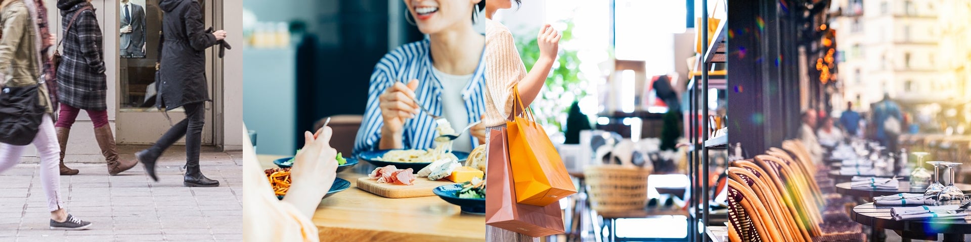 多彩なお店が入居予定で、屋外の広場には植栽やベンチが置かれエリアの憩いの場として機能していく。