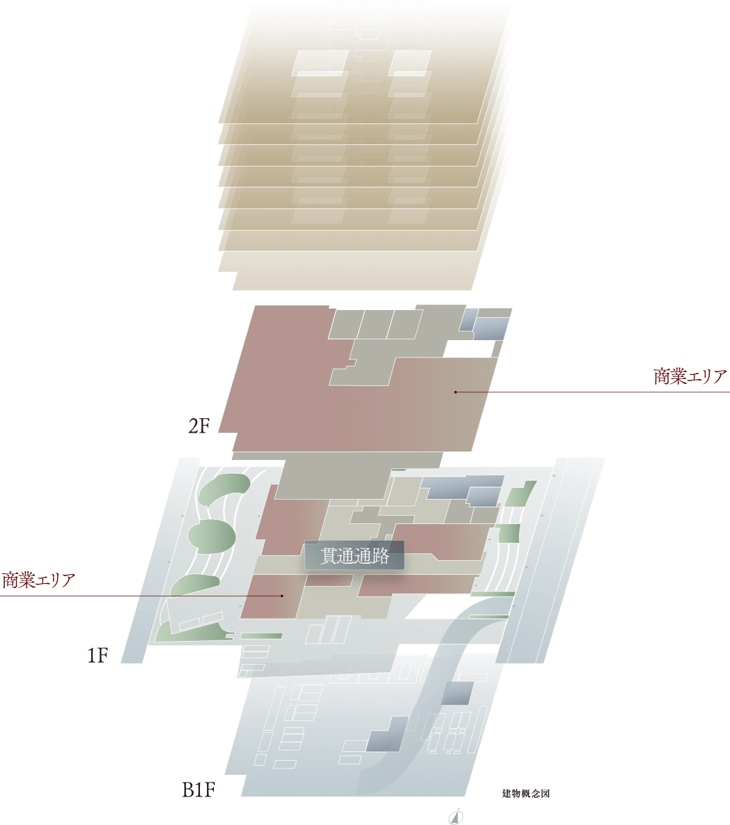 本プロジェクトにおいても基壇部には商業エリアを設け、