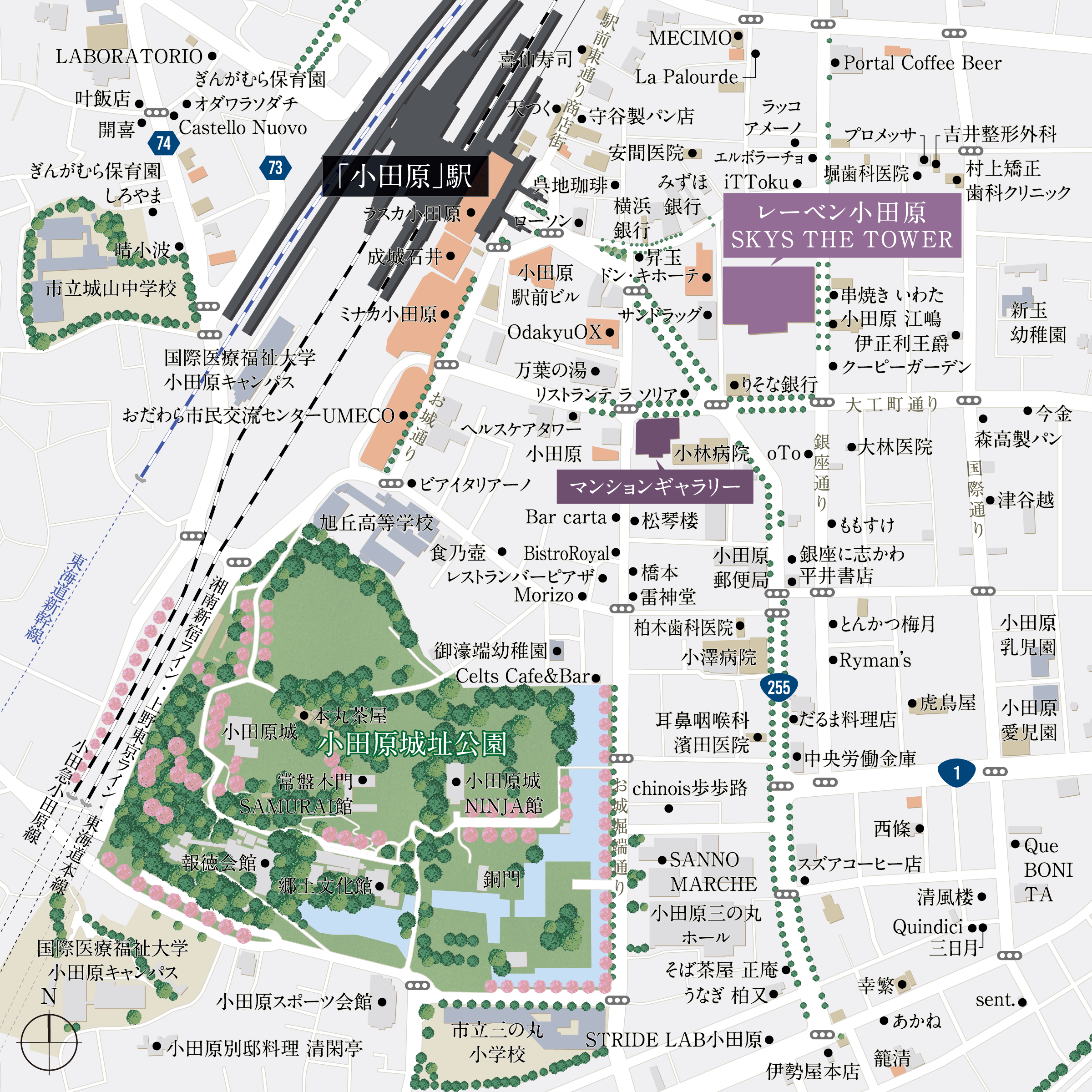 小田原エリア最大級プロジェクト。レーベン小田原 スカイズ ザ・タワーの現地案内図ページ。