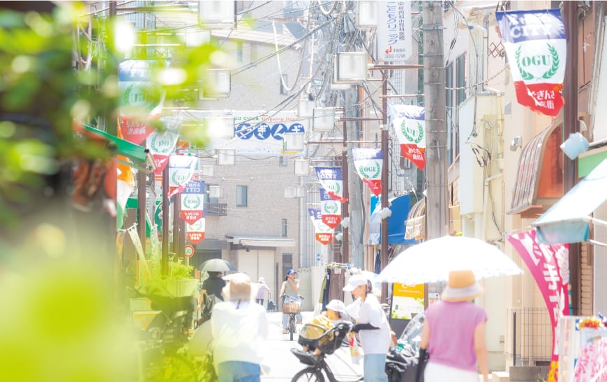 古き良き風情と新しいセンスが同居する「尾久銀座商店街」。 日常の食卓を支える専門店から、スタイリッシュなカフェやベーカリーまでが立ち並び、散歩の途中に立ち寄りたくなる心地よさがあります。大通りの喧騒から一歩入ると、そこには“日常が少し特別になる”時間。地域の温度感と現代の感性が交わる、暮らしの舞台です。