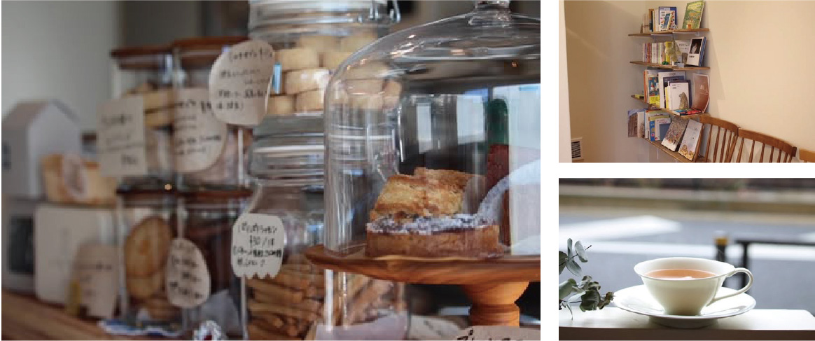 チャイや紅茶、液体洗剤まで量り売りするユニークなカフェ兼ショップ。小さな瓶に入ったクッキーやスコーンがずらりと並び、注文ごとに焼き上げる平飼い卵のクレープも人気です。店内にはカウンター席と、ベンチ付きのくつろぎテーブル席があり、地域の親子からチャイ好きまで幅広い層に愛されています。