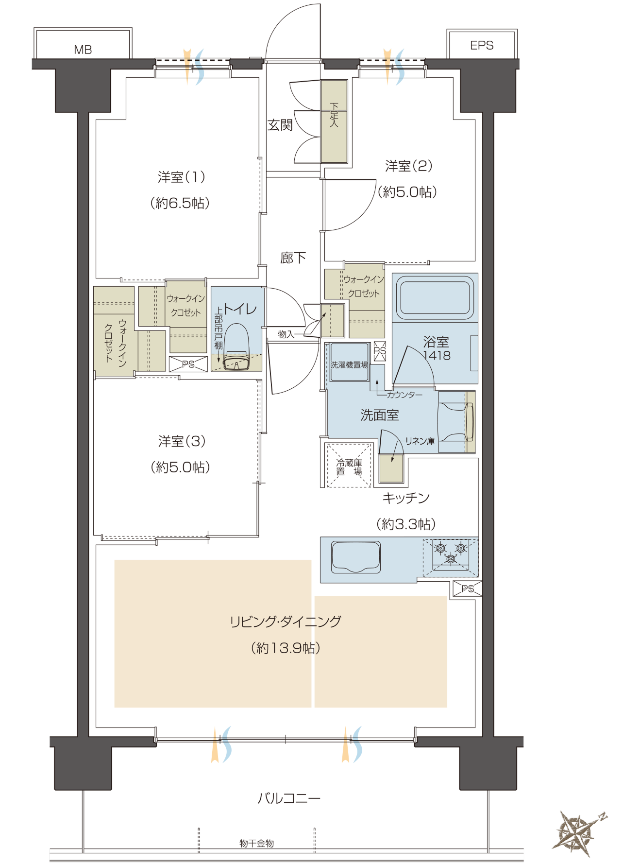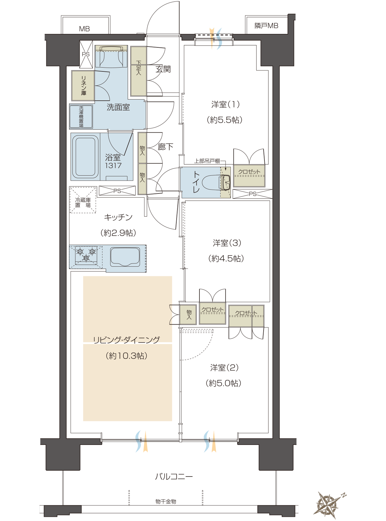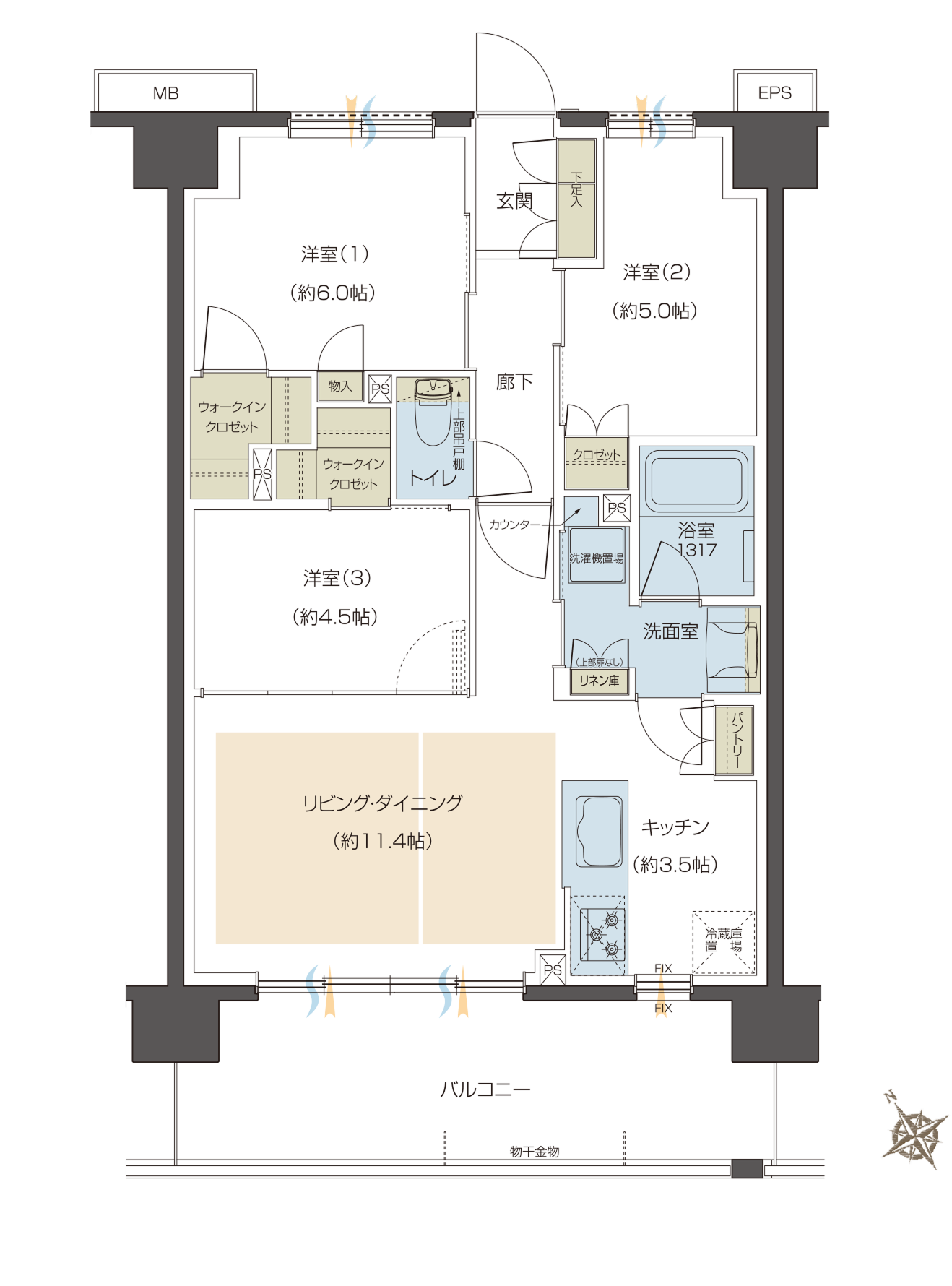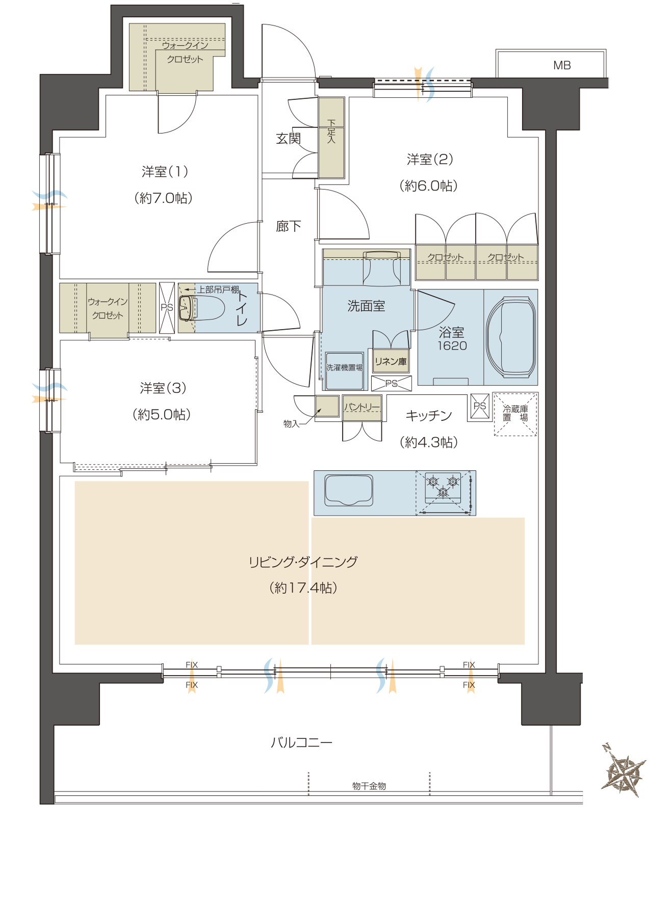※掲載の間取図は計画段階の図面を基に描き起こしたものであり、今後変更になる可能性があります。※代表の間取りを掲載しています。バルコニー・マリオン形状等は階数により異なる場合があります。