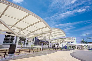 土地区画整理事業により、バス・タクシーの乗降場も備えた美しいロータリーへと生まれ変わりました。
