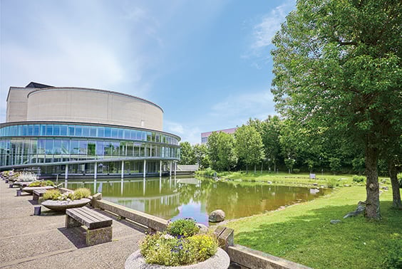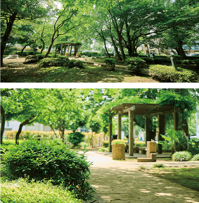 インターロッキング舗装の開放感あふれる遊歩道で繋がり、