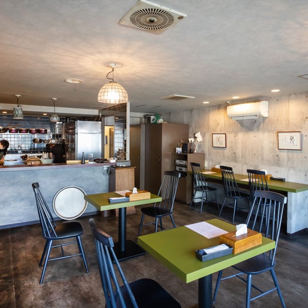 高原リゾートをコンセプトにした、ゆったりできるソファー席も用意された、くつろぎの空間が魅力のカフェ。ふわふわのリコッタパンケーキをはじめ、食事やデザートメニューも豊富です。